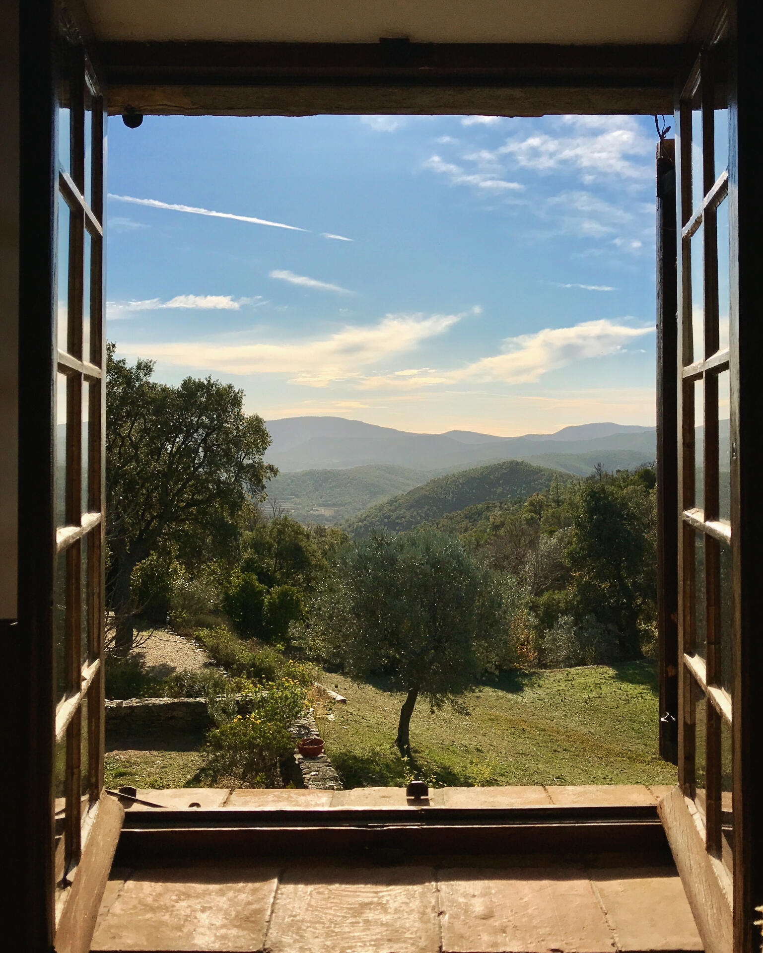 Maison Camp-Vif started life as a Coaching Inn and a former post house, a Relais. It is a rare 18th-century thick-stone building that sits at the top of the valley d’Arnaud — offering an uninterrupted view over the plains up to a wave of hills rolling back to the south of the Massif des Maures.